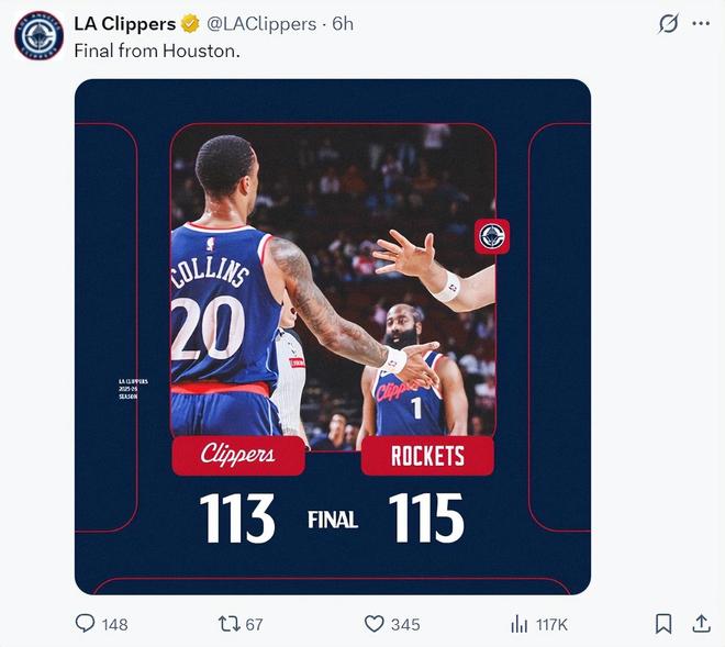 NBA战报:火箭115-113险胜快船,祖巴茨空砍33分